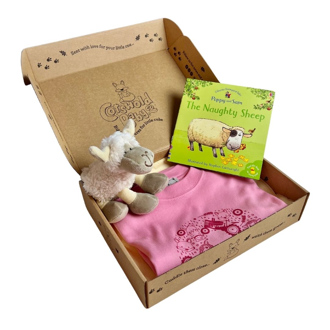 Celebrate their special second birthday with our fabulous Fun in the Country 2nd Birthday Pink Gift set! Little Cubs will love spotting their favourite farmyard friends on this lovely pink t-shirt from Cotswold Baby Co, and the Louis Lamb soft toy and 'The Naughty Sheep' book will will provide lots of fun for farm mad little ones.